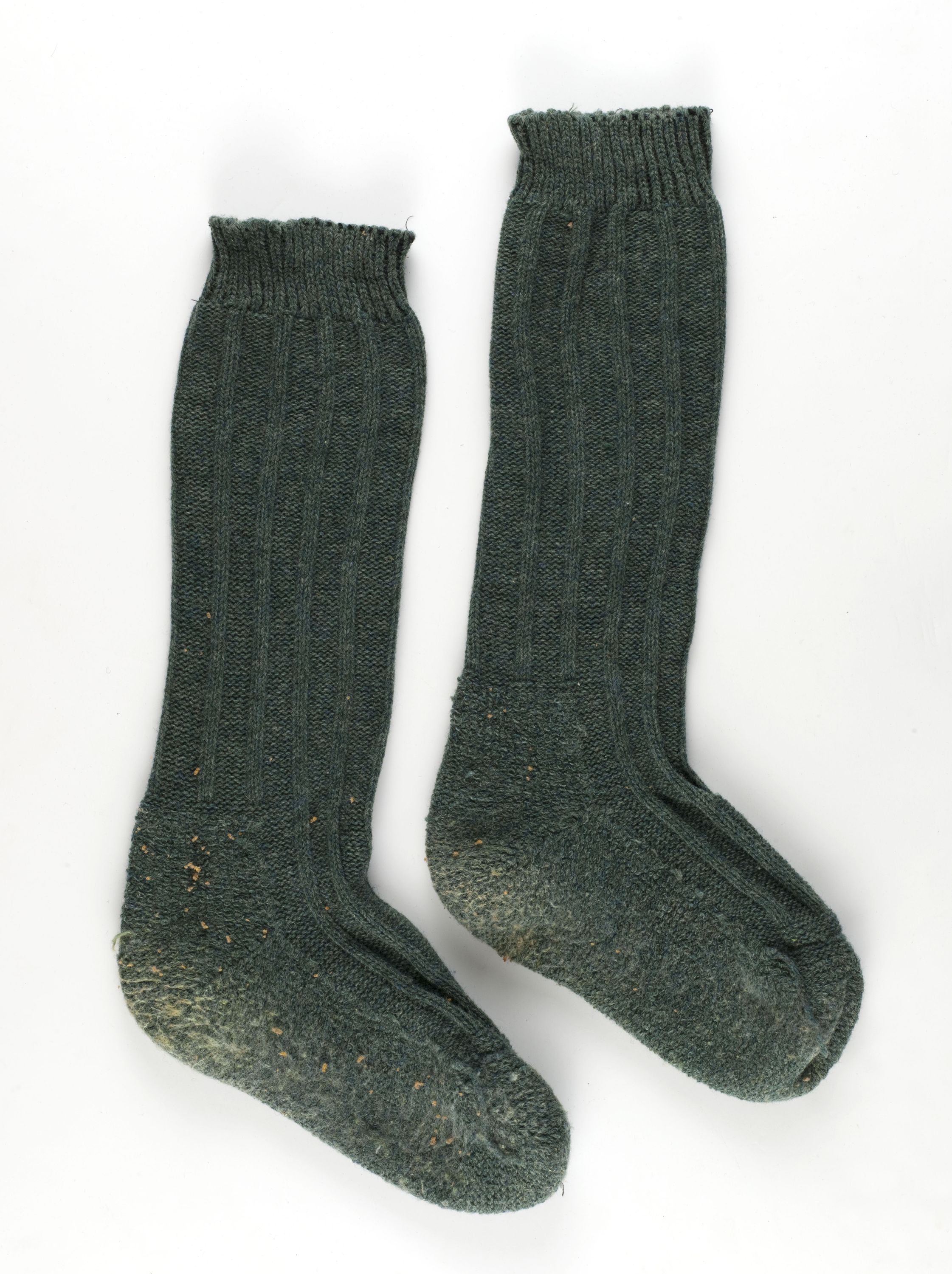 Chaussettes côtelées, vertes, civiles (n'ayant rien à voir avec le modèle réglementaire américain), d'achat personnel.