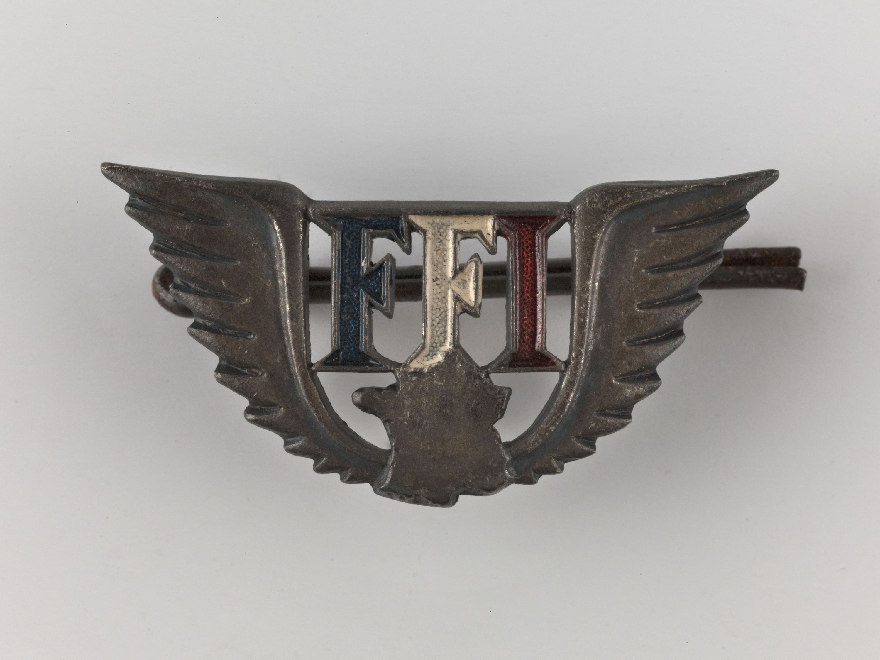 En métal argenté, double épingle ressort, passant par deux anneaux pour le fixer, au revers.