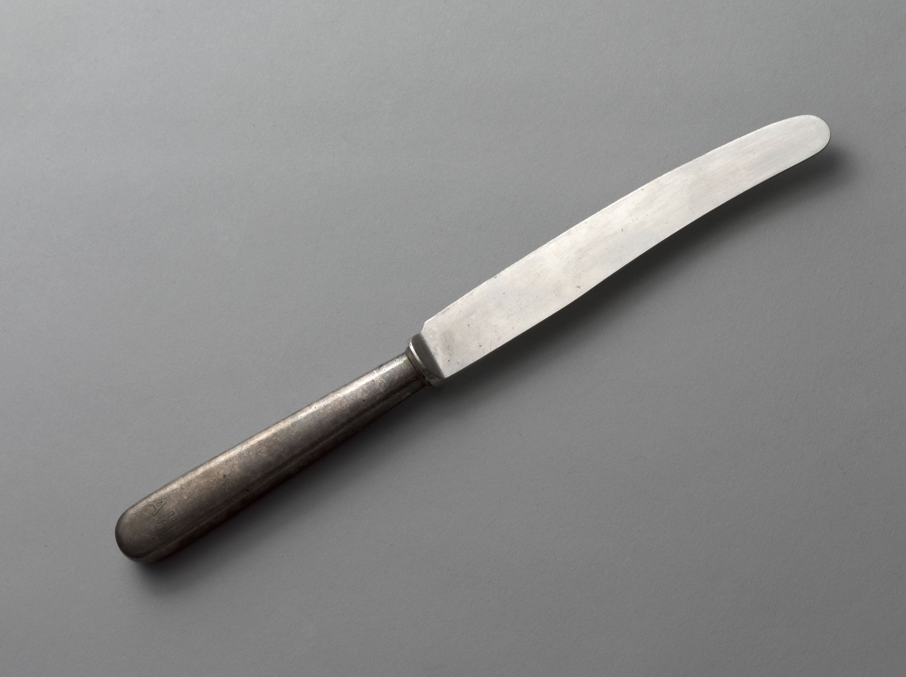 Manche en métal argenté, lame inoxydable. Différents marquages présents.