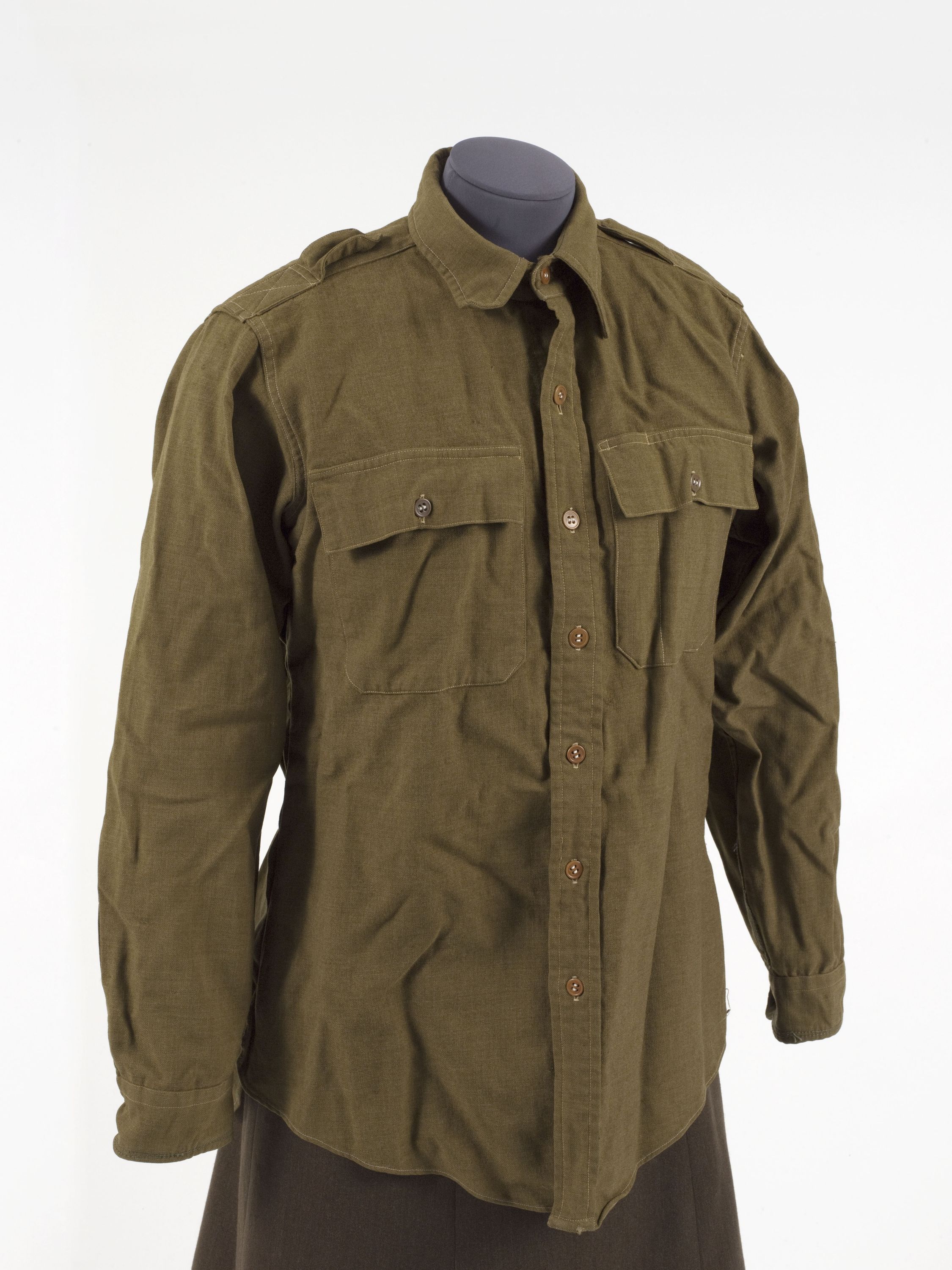 En laine, de teinte "Olive Drab". Les pattes d'épaules, destinées à recevoir les insignes de grade, jusqu'en août 1942, sont cousues en croix au niveau des emmanchures et boutonnées près du col. Poches à rabats rectangulaires, poche gauche avec couture verticale supplémentaire formant un logement pour un stylo, sept boutons sur le devant, coutures de fils blancs. Coutures de renfort au bout des manches, étiquette sur le col.