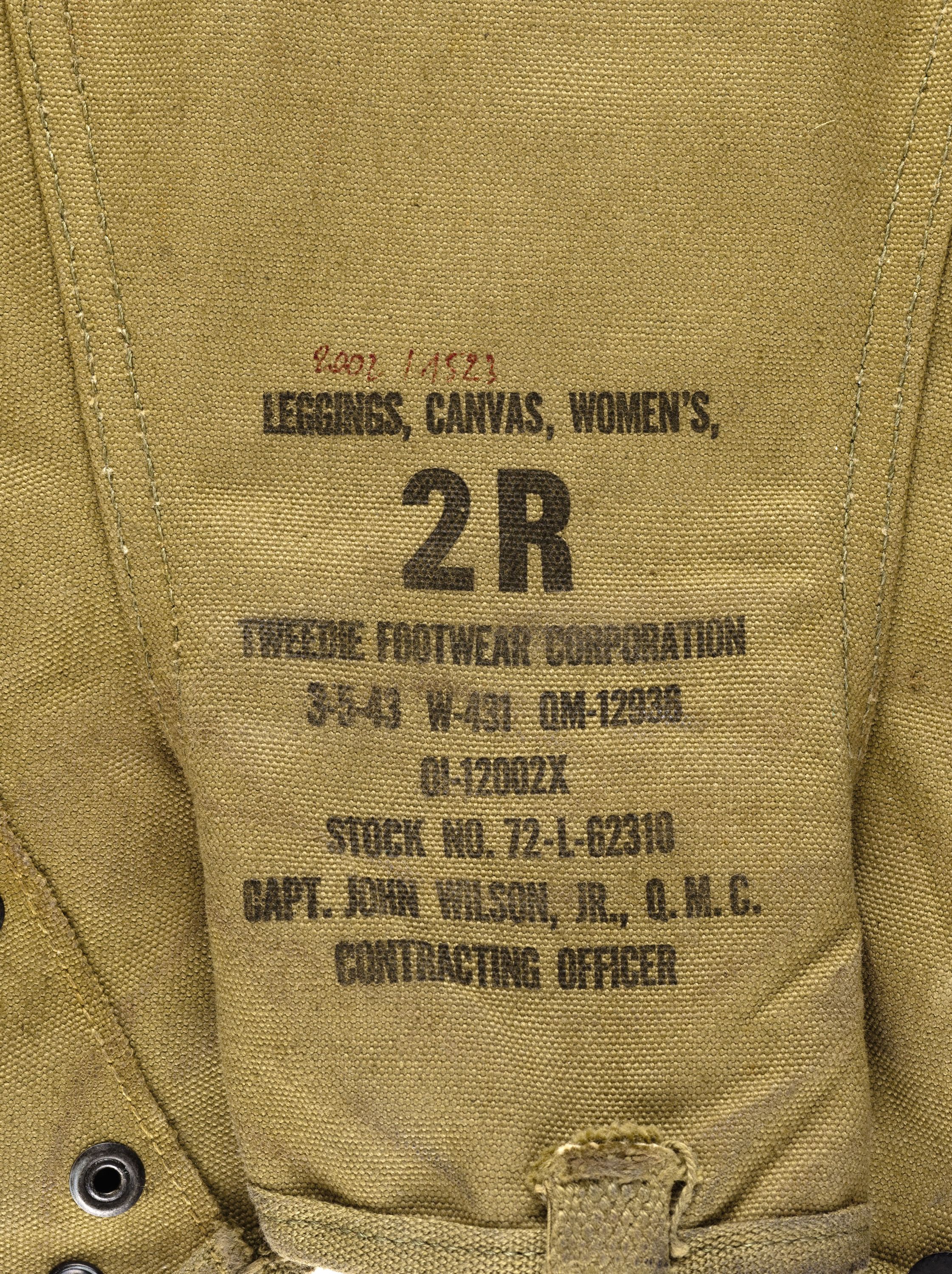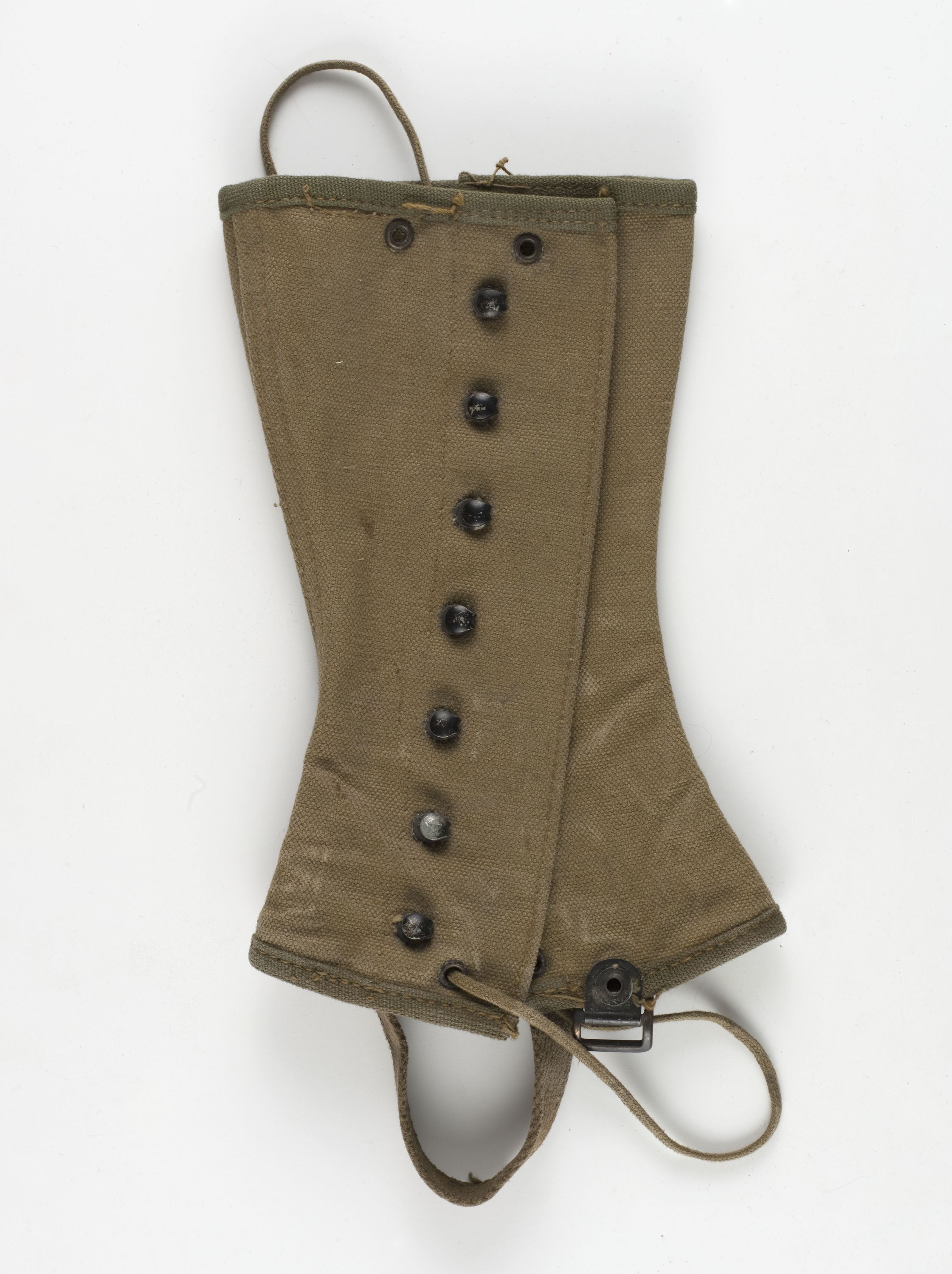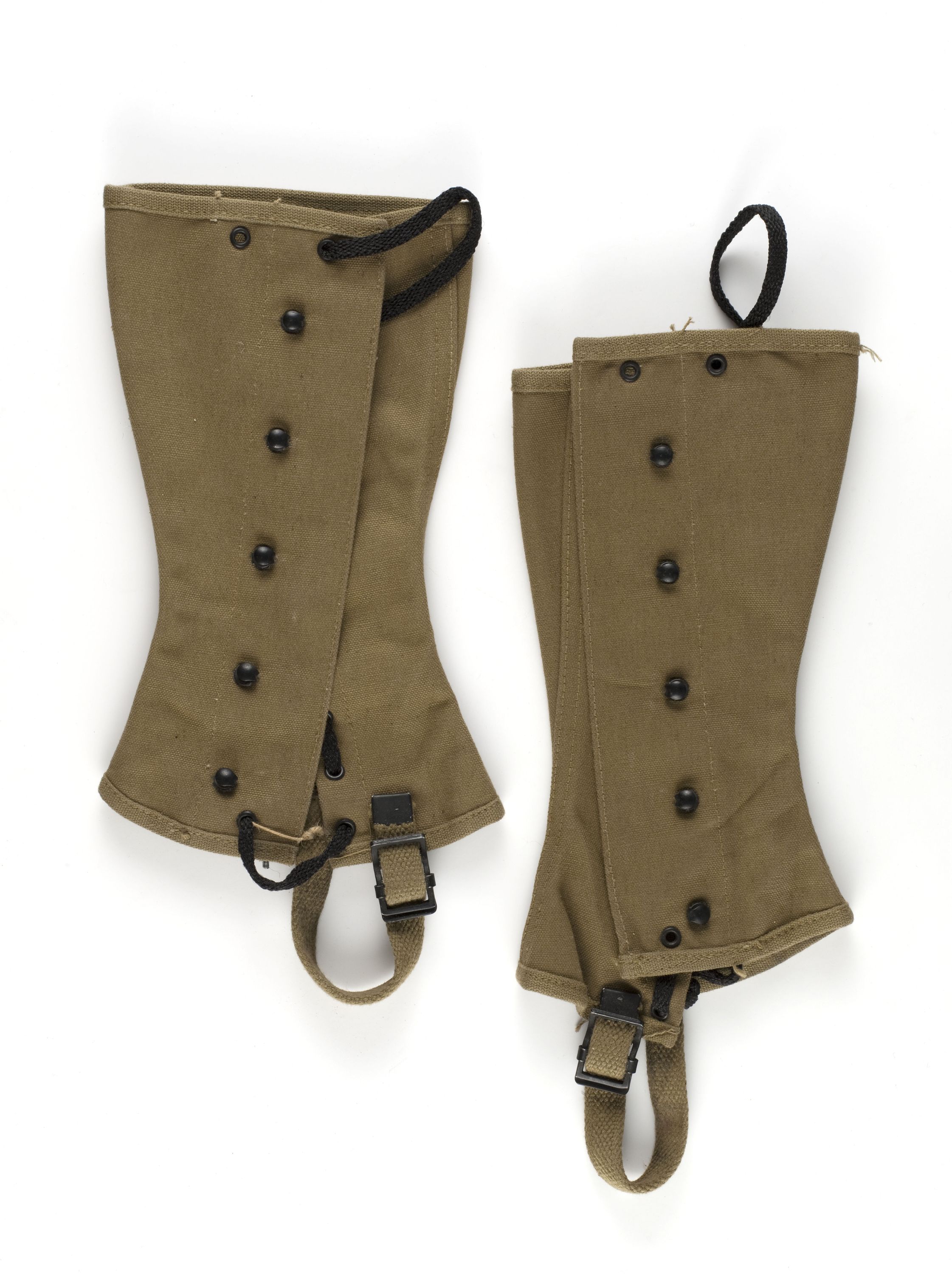 Paire de guêtres américaines pour personnel féminin, lacets noirs non réglementaires, et une guêtre seule.