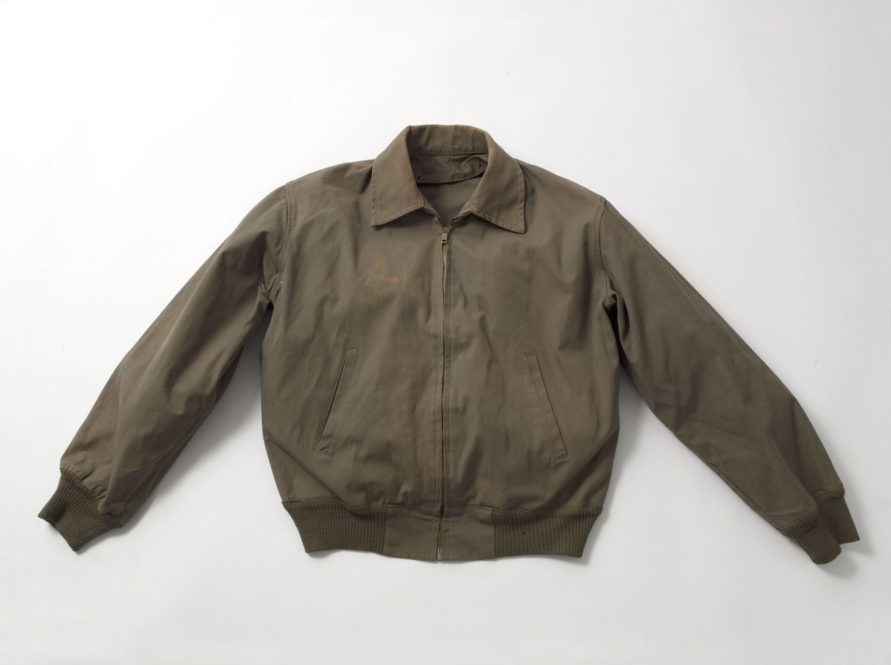 De style "JACKET, FIELD, OD" (mai 1941). Pas de pattes d'épaules, fermeture à glissière, douze boutonnières pour une doublure intérieure, deux poches verticales obliques, poignets et bas en tricot (comparer avec le "JACKET, FLYING, TYPE A2" ou les actuels blousons de marque "SCHOTT"). "porté par le Général Leclerc" selon Lozada.