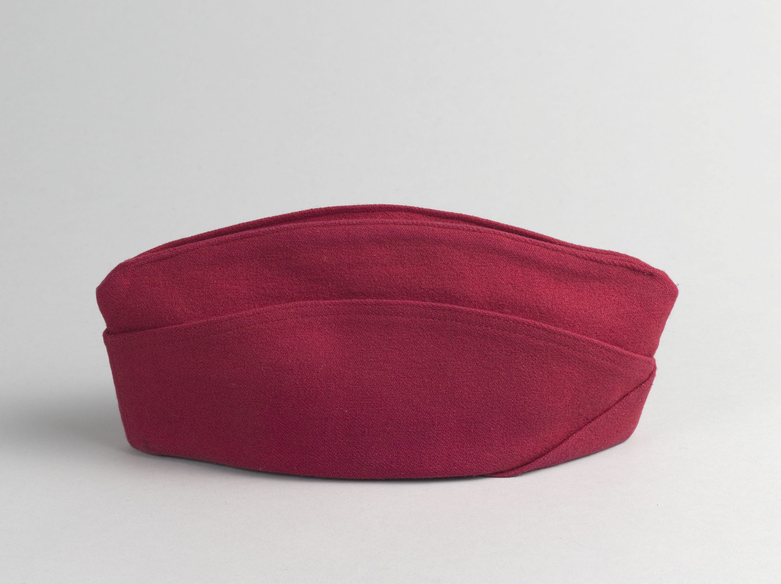 Intégralement rouge, pourtour intérieur en basane, traces de deux boutons sur le devant et d'un galon, doublure de rayonne rouge.