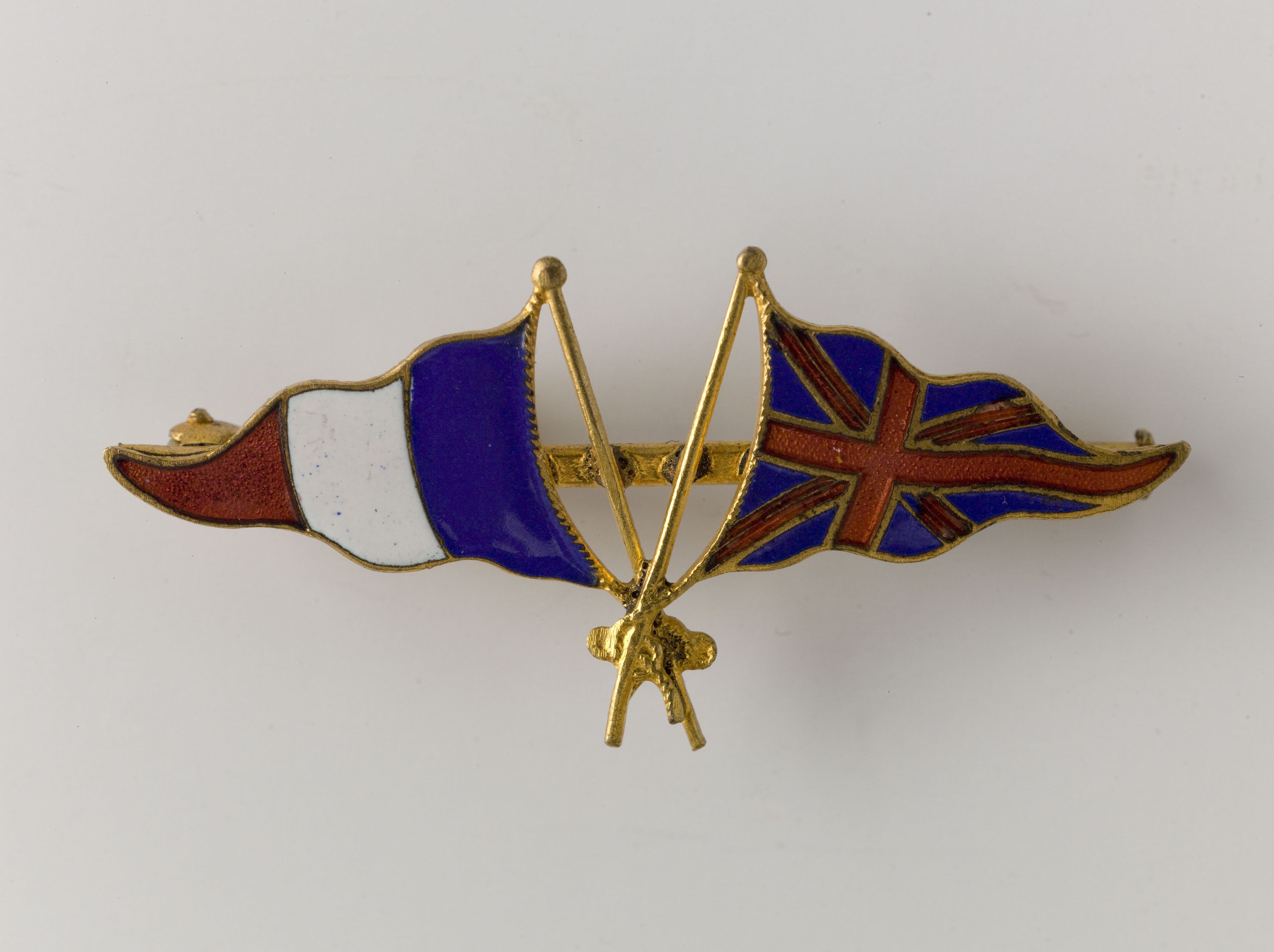 Revers lisse, épingle horizontale et fermoir tubulaire - avec bouton de sécurité coulissant - soudés.