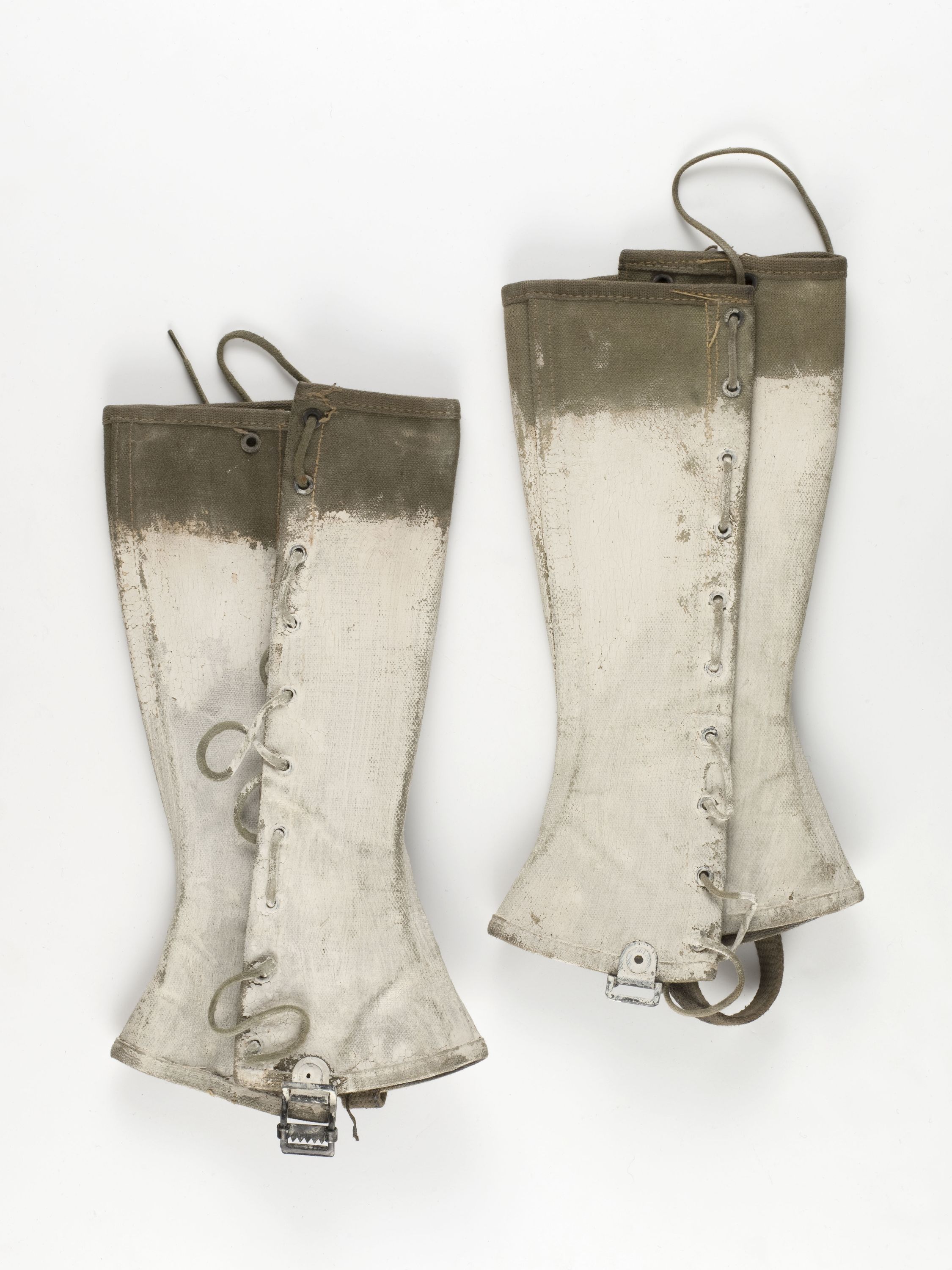 Paire de guêtres américaines, bien marquées, lacets réglementaires présents ; ces guêtres ont été passées au "blanco", peut-être pour une prise d'armes.